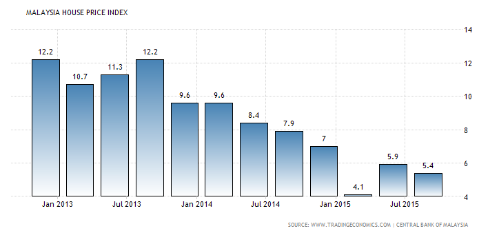 The housing price index has fallen to 4.10% in the first quarter (Q1) of 2015, from 7% in the fourth quarter (Q4) in 2014. This is a significant drop.